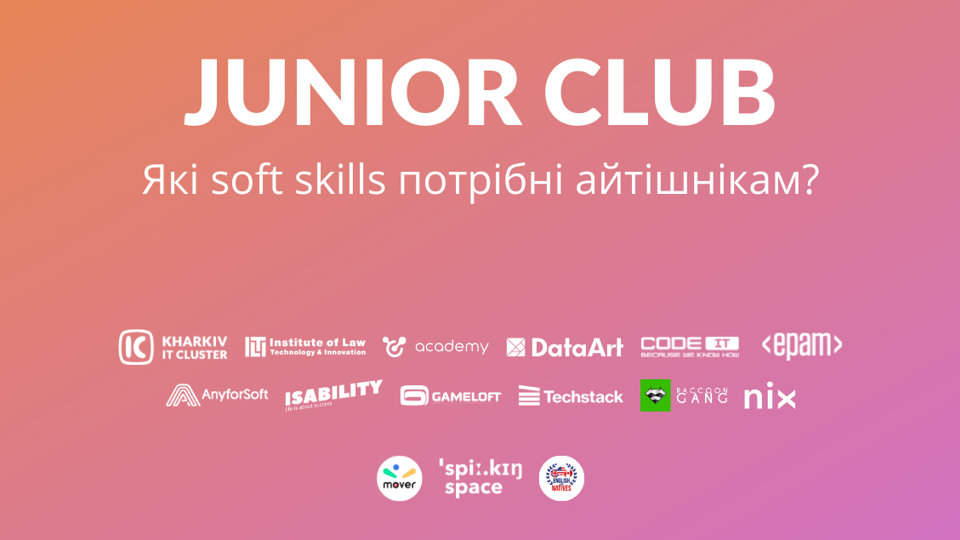 Junior Club від Kharkiv IT Cluster — це клуб однодумців, які прагнуть познайомитися з топовими IT-спікерами й потенційними роботодавцями, дізнатися про внутрішню кухню IT та прокачати soft skills, а також стати частиною ком’юніті мотивованих і зацікавлених.
