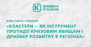 Читати повністю13 травня Ольга Шаповал, директорка Харківського ІТ Кластера, виступила на вебінарі «Кластери — як інструмент протидії кризовим явищам і драйвер розвитку в регіонах», який прове...