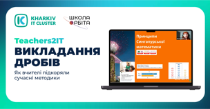 Читати повністю03 травня в межах проєкту Teachers2IT Kharkiv IT Cluster спільно з освітнім простором «Школа Орбіта» провели вебінар для вчителів математики на тему «Сучасні методики викладання...