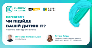 11 жовтня в межах проєкту Parents2IT від Kharkiv IT Cluster відбувся вебінар для батьків із CEO онлайн ІТ-академії для дітей та підлітків GoITeens Вячеславом Поліновським s пси...