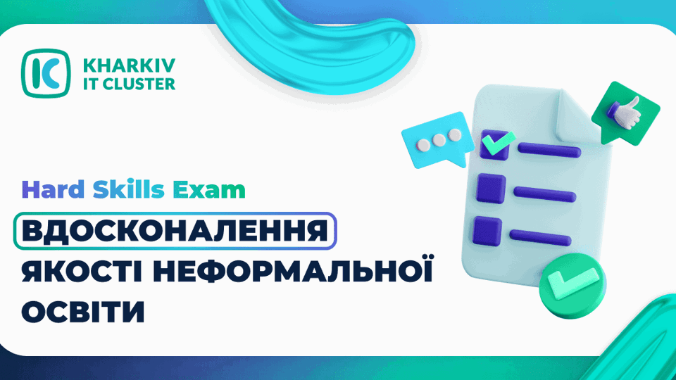 Після перерви проєкт отримав новий поштовх й успішно відновлюється. База питань постійно поповнюється та оновлюється. Завдяки проєкту Hard Skills Exam IT-компанії мають змогу не лише отримувати вибірку найкращих студентів-випускників, яких можуть запрошувати для співпраці, а й впливати на якість підготовки майбутніх фахівців освітніми компаніями. У межах проєкту Hard Skills Exam ми створюємо платформу для обміну інформацією та взаємодії між освітніми закладами та промисловим сектором, що сприяє покращенню якості освіти та відповідності навчальних програм потребам ринку праці у сфері IT. Долучайтеся до спільноти Kharkiv IT Cluster, сприяйте покращенню якості IT-освіти та розвитку IT-сфери, долучайтеся до спільних зусиль та ставайте учасниками великих змін в розвитку новітніх інформаційних технологій!Підпишись на наш телеграм канал, щоб бути у курсі подій