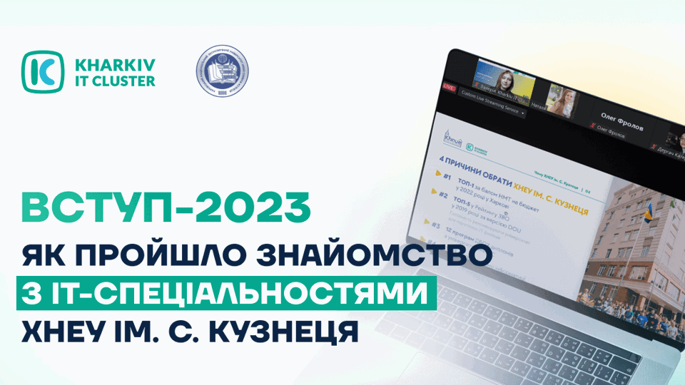 «За результатами 2022 року у Харкові ХНЕУ ім. С. Кузнеця входить до ТОП-1 за балом НМТ вступу на бюджет. А у 2019 році за версією DOU в ТОП-5 у Рейтингу ЗВО, це готовність рекомендувати університет для підготовки ІТ-фахівців, дане опитування проводилося серед представників університету, які безпосередньо працюють у сфері інформаційних технологій. Також, зазначимо, що в університеті представлено 12 програм ДВОХ дипломів з університетами країн ЄС», — розповіли під час вебінару.