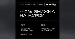 Читати повністюУ Promodo Academy кожен день наступного тижня — Чорна п'ятниця! 🌚 У ці непевні часи нам потрібна впевненість хоч в одній зі сфер нашого життя. Коли як не зараз почати вдосконал...