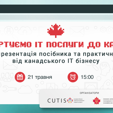 Безкоштовна онлайн презентація посібника “I Can Export: Як експортувати в Канаду послуги у сфері інформаційно-комунікативних технологій (ІКТ)”