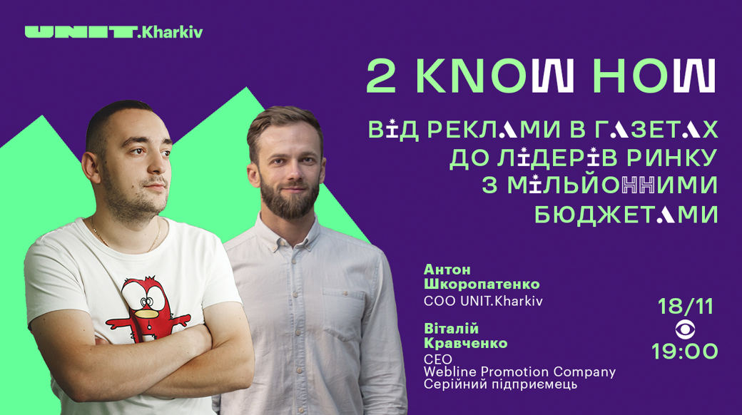 Speaker: Vitaly Kravchenko - UNIT.Kharkiv resident, founder and head of the digital marketing agency Webline Promotion, organizer of the Ukrainian Digital Conference and co-owner of the food delivery service Street Grill. Host: Anton Shkoropatenko - СOO UNIT.Kharkiv