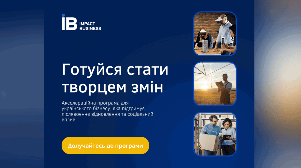 Impact Business Accelerator Program, initiated by Impact Force NGO, is powered by the Ministry of Digital Transformation of Ukraine, Entrepreneurship and Export Promotion Office and national project Diia.Business, supported by the Schwab Foundation for Social Entrepreneurship, the WEF Global Alliance for Social Entrepreneurship, academics and alumni from the University of Cambridge, in partnership with SiLab Ukraine, MovingWorlds.org (backed by SAP, Unilever, and EY, among others), Netguru, Tech To The Rescue, Phineo and LCF Law Group, leading Ukrainian Social Society organizations.