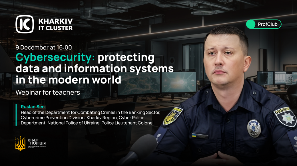 On December 9, 2025, Kharkiv IT Cluster invites teachers, managers and all interested parties to a practical webinar dedicated to data and information systems protection, where you will learn how to protect yourself, your company and your digital assets.