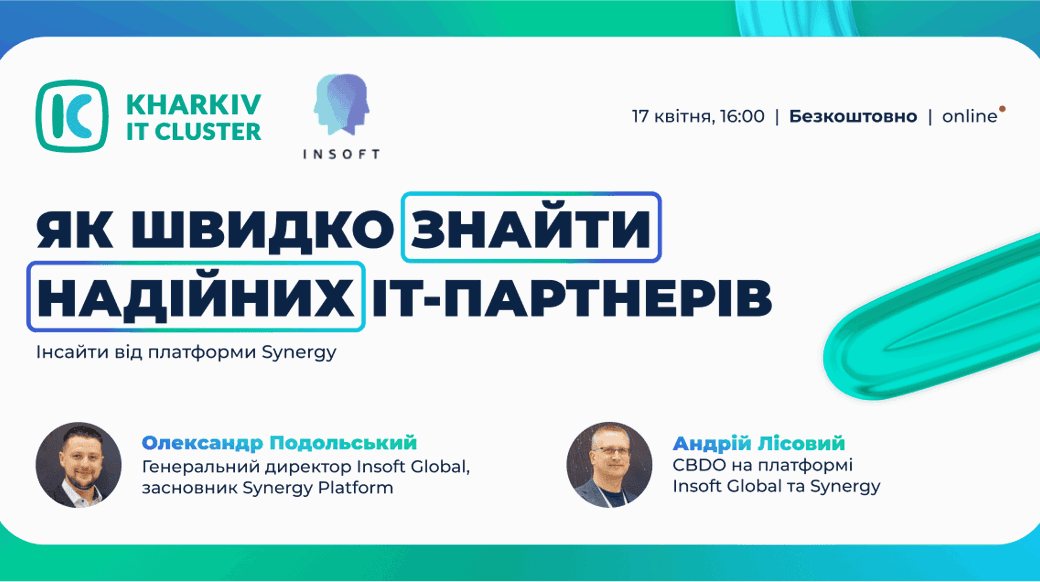 Тоді нічого не плануй на 17 квітня — приєднуйся до івенту від компанії Insoft «Як швидко знайти надійних ІТ партнерів. Інсайти від платформи Synergy». Ти дізнаєшся, як і де знайти ІТ-партнерів.