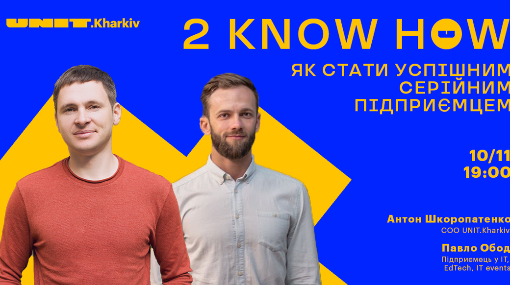 Запрошуємо на інтерв’ю з Павлом Ободом 2 Know How: Як стати успішним серійним підприємцем, яке проведе СOO UNIT.Kharkiv Антон Шкоропатенко.