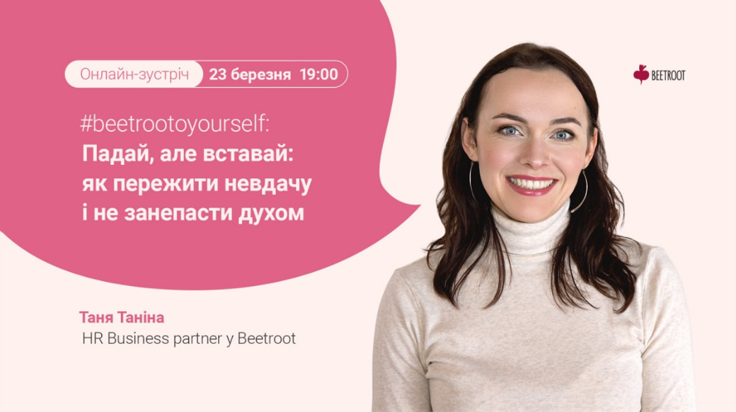 23 березня о 19:00, в рамках серії зустрічей #beetrootoyourself, HR-консультантка у Beetroot Таня Таніна розповість: