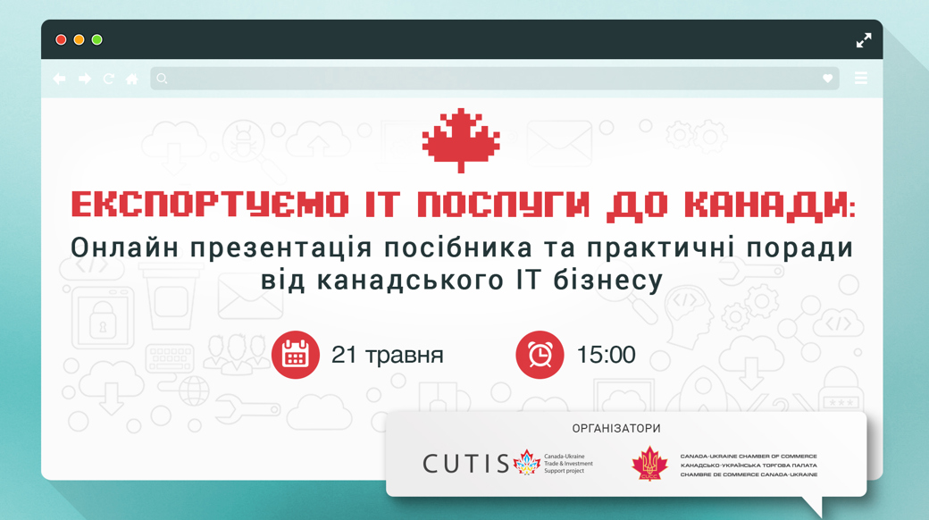 Більше цікавих фактів та практичних порад щодо співпраці з канадським IT ринком ви дізнається під час БЕЗКОШТОВНОЇ онлайн презентації посібника “I Can Export: Як експортувати в Канаду послуги у сфері інформаційно-комунікативних технологій (ІКТ)”, організованої проектом CUTIS та Канадсько-українською торговою палатою. Інформаційний партнер заходу - IT Ukraine Association.