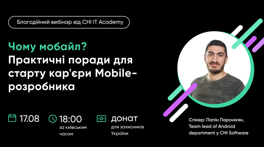 Благодійний вебінар “Чому мобайл? Практичні поради для старту кар'єри mobile-розробника” від CHI IT Academy