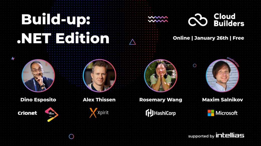 26 ciчня Cloud Builders проводить безкоштовний онлайн мітап, який об'єднає .NET експертів з Microsoft, Crionet & JetBrains, HashiCorp та Xpirit.