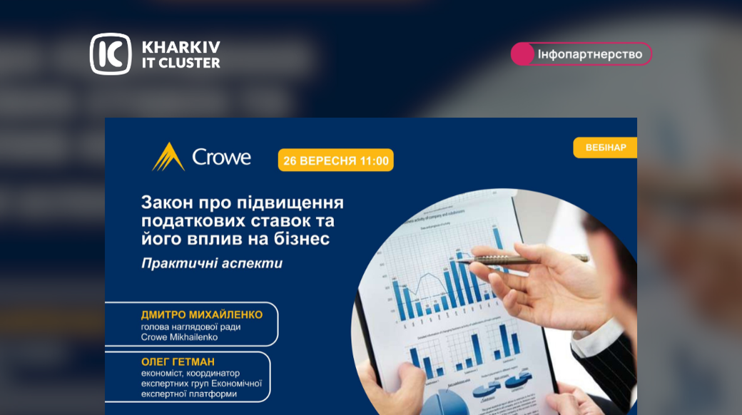 📢 Шановні друзі, Kharkiv IT Cluster запрошує вас на актуальний вебінар, який вже в цей четвер проведе команда Crowe Mikhailenko.