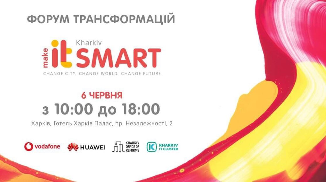 Make IT SMART – форум smart-трансформацій, який пройде вже 6 червня у Харкові за підтримки компаній Vodafone та Huawei. Цей захід – можливість для мешканців та гостей міста дізнатися більше про те, що ж таке smart city в Україні та світі, познайомитися з вже існуючими рішеннями для побудови розумних міст, подивитися на новітні розробки від справжніх digital-експертів українського та світового ринку.