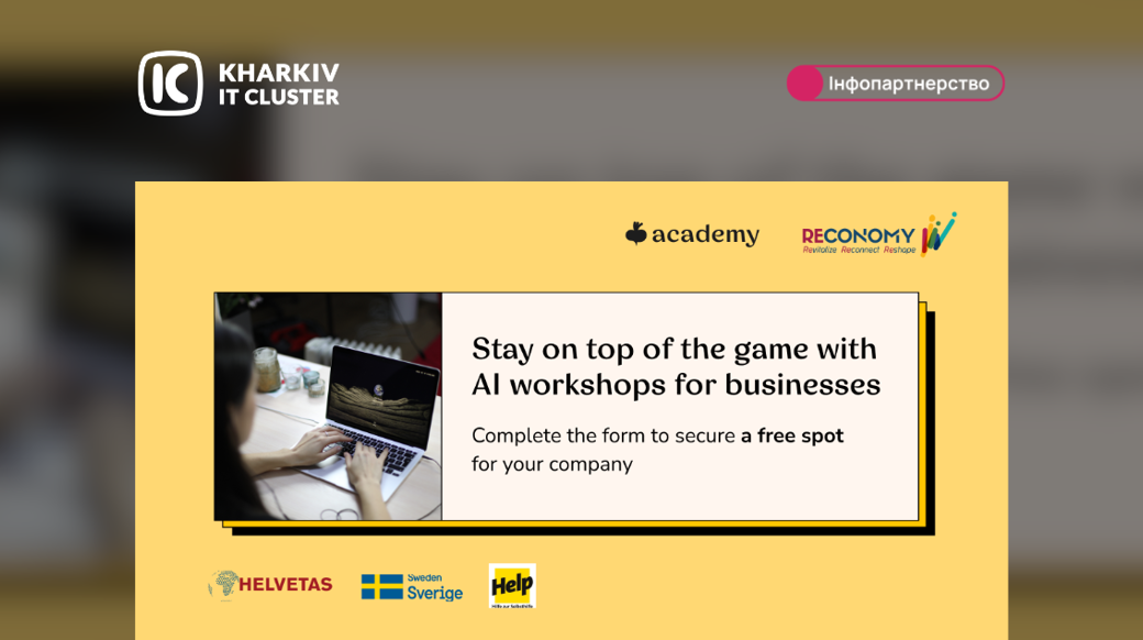 Beetroot Academy співпрацює з програмою RECONOMY, що впроваджується Helvetas та Help, у сфері розвитку українських та молдовських бізнесів. В рамках програми ви маєте змогу доєднатись до безкоштовного воркшопу «Generative AI для продуктивності». Це 3 години, які допоможуть підвищити ефективність і якість за допомогою інструментів Generative AI.