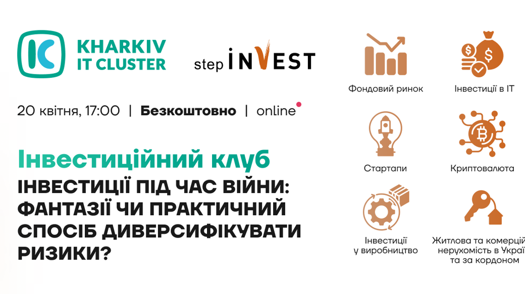 Ми раді анонсувати вступну онлайн-зустріч на тему “Інвестиції під час війни: фантазії чи практичний спосіб диверсифікувати ризики?” вже 20 квітня о 17:00.