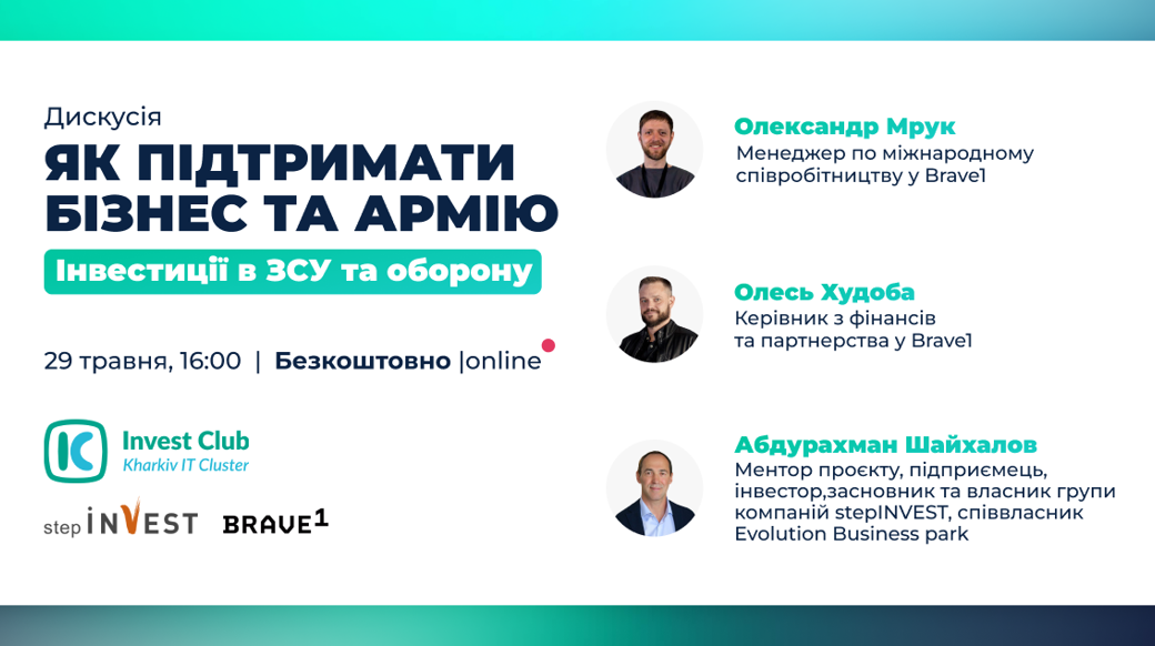 29 травня о 16:00 запрошуємо на дискусію «Інвестиції в ЗСУ та оборону: як підтримати бізнес та армію?»