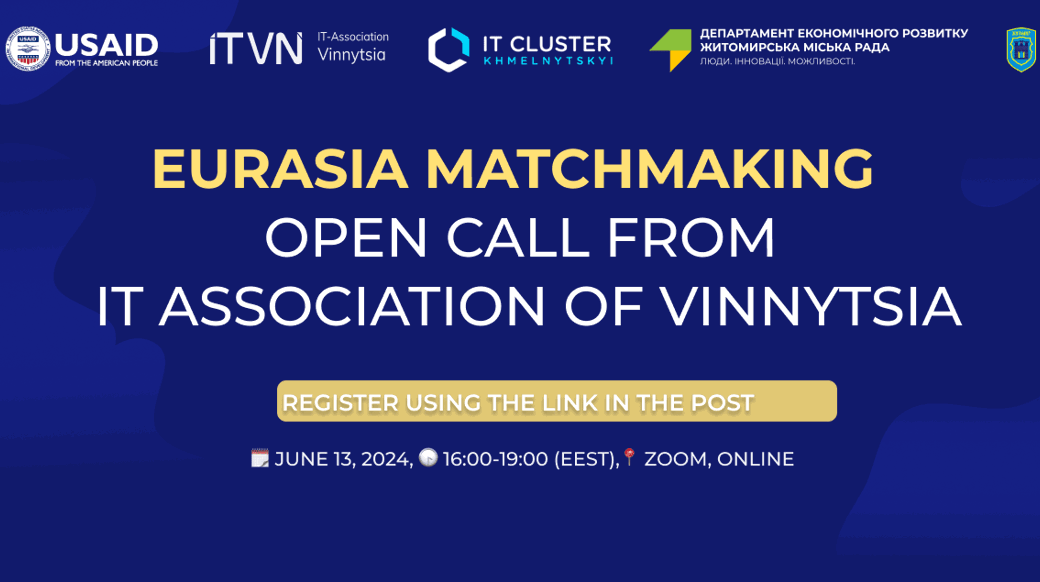 В рамках ініціативи «IT HUB Central Ukraine» ІТ Асоціація Вінниці запрошує колег з ІТ сектору Центральної України на онлайн метчмейкінг з ЄС ринком.