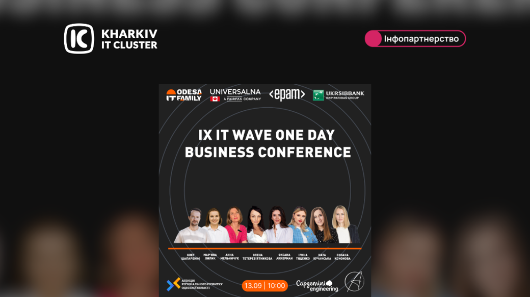 Реєстрація за посиланням: https://it-family.od.ua/it-wave-13-09-2024/ Дізнавайтеся перші деталі на нашому сайті! Не пропустіть можливість стати частиною нової IT-хвилі!IX IT Wave One day business conference
