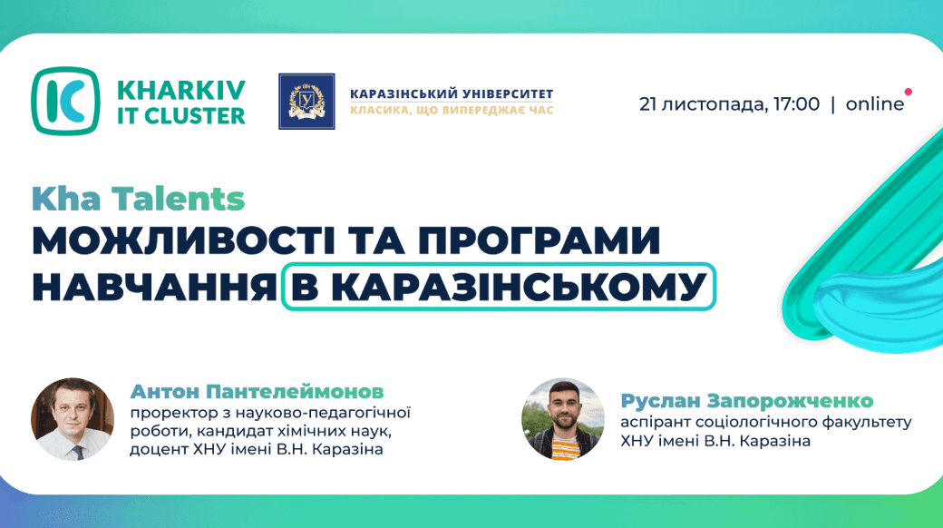 📅21 листопада Kharkiv IT Cluster спільно з Харківським національним університетом імені В. Н. Каразіна запрошує тебе у подорож до світу можливостей задля розкриття твоїх унікальних талантів. Тому реєструйся для участі у вебінарі👇