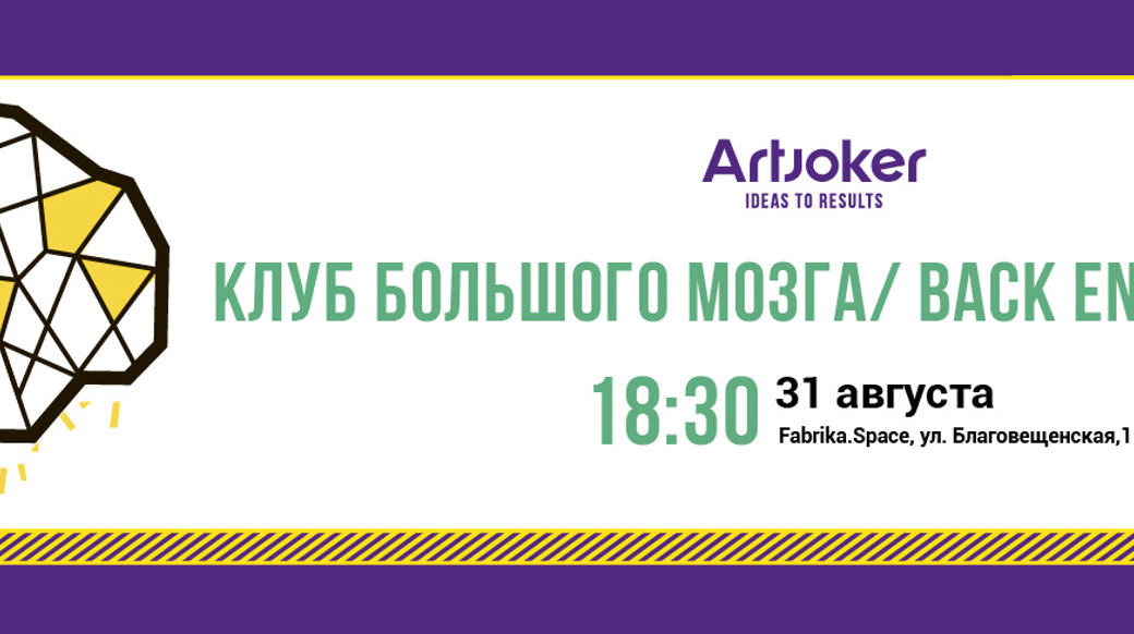 31 серпня FABRIKA.SPACE відбудеться друга зустріч Клубу Великого Мозку від Artjoker. Тема події - Back End розробка. Поговоримо про Laravel та Node.JS.