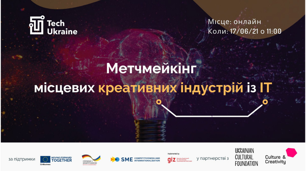 17 червня о, 11.00 запрошуємо вас на онлайн Метчмейкінг подію для креативних індустрій та IT, що має на меті поєднання компаній з двох галузей задля пошуку надійного партнера для діджиталізації бізнесу.