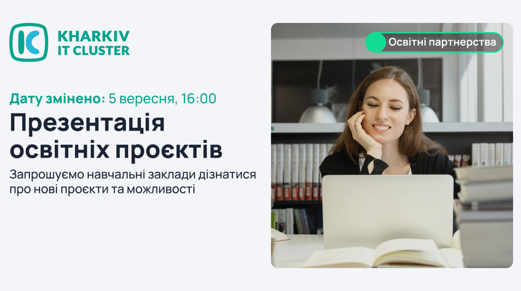 Kharkiv IT Cluster запрошує освітян на презентацію проєктів нового сезону, які спрямовані на абітурієнтів, студентів, викладачів і вчителів, а також на підвищення якості вищої освіти.