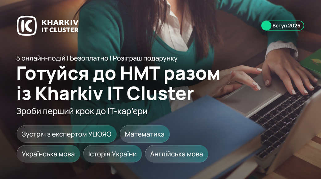 Kharkiv IT Cluster запрошує абітурієнтів на онлайн-марафон «Підготовка до НМТ як перший крок до ІТ-кар’єри», який поєднує експертні розбори тестів і типових завдань та практичні челенджі у Telegram-каналі «Вступ — це легко!».