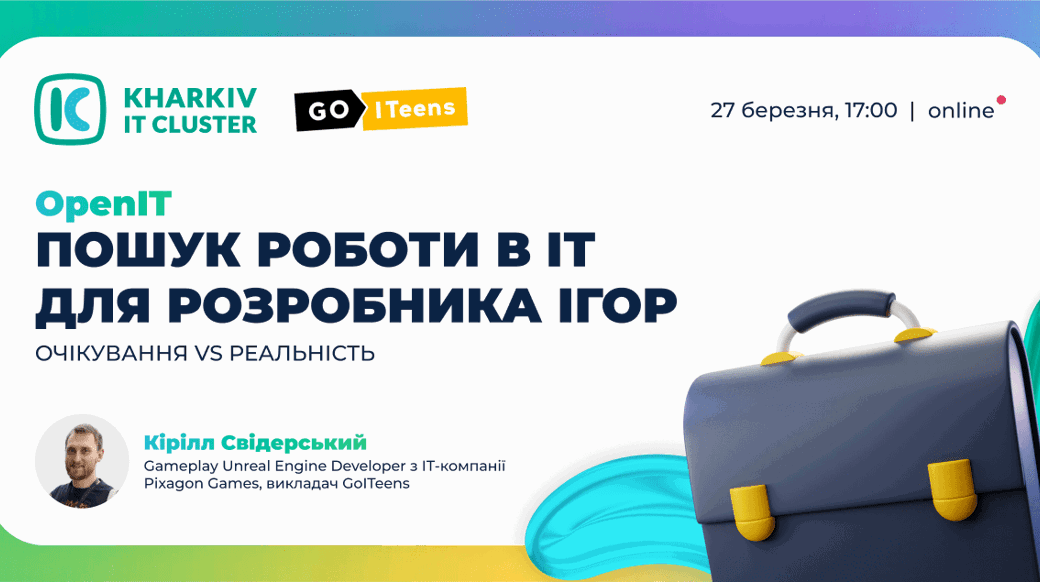 27 березня Kharkiv IT Cluster і викладач GoITeens відкриють тобі таємницю: як же знайти першу роботу в ІТ, зокрема серед game developers🤩
