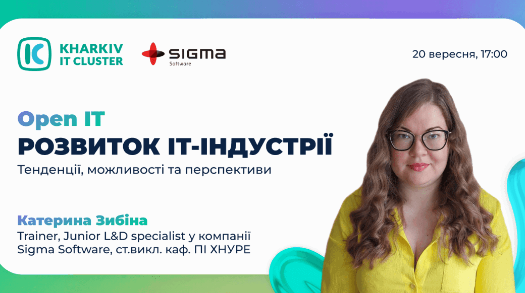 Катерина Зибіна, Trainer, Junior L&D specialist у компанії Sigma Software, старший викладач кафедри програмної інженерії Харківського національного університету радіоелектроніки.Поговоримо про: