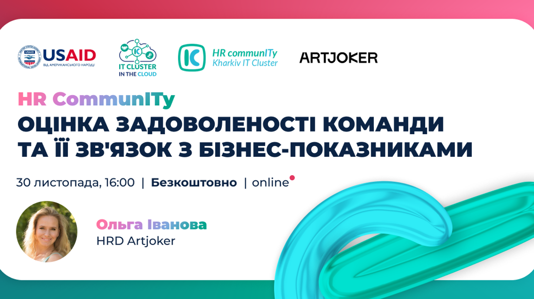 📆 30 листопада о 16:00 зустрінемось на вебінарі HR CommunITy «Оцінка задоволеності команди та її зв'язок з бізнес-показниками».