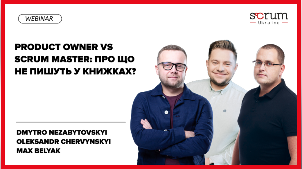 Вже 10 травня Scrum Україна та запрошений гість Максим Бєляк (Chief Product Officer (CPO) в компанії Jooble) пропонують розібратися, хто такі Скрам Майстер та Продакт Оунер в реальному світі, за що відповідають, як взаємодіють, та які в них бувають конфлікти.