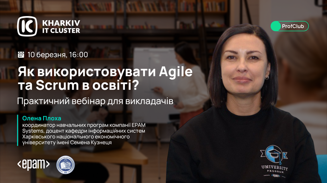 Kharkiv IT Cluster організовує вебінар ProfClub, присвячений адаптації гнучких методів управління для академічного середовища.