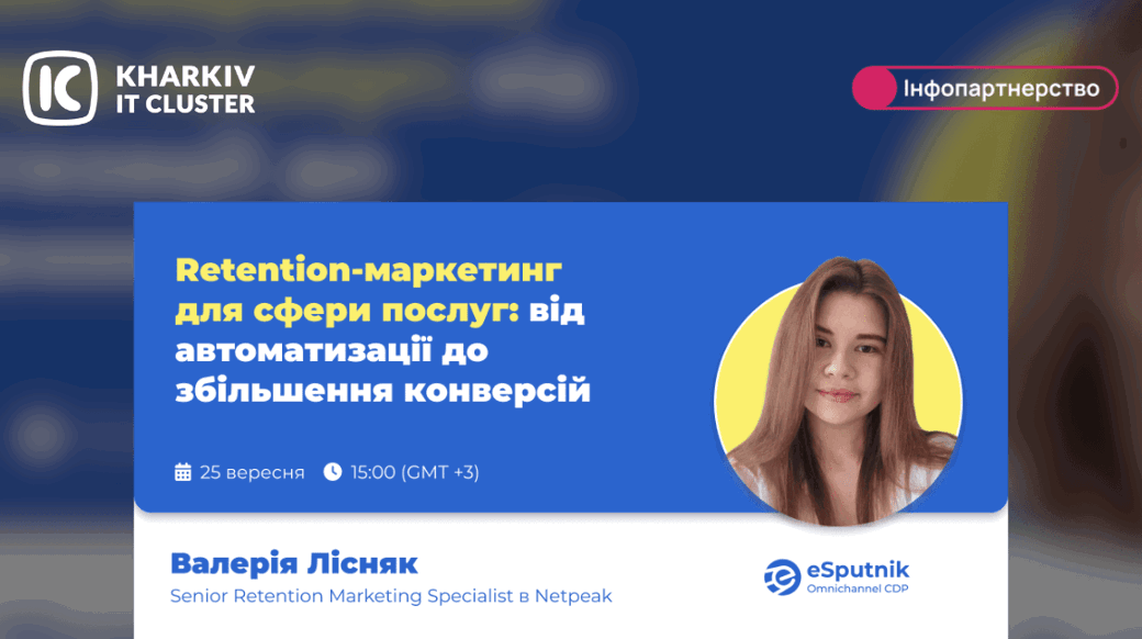 Приєднуйтеся до вебінару від омніканальної CDP eSputnik 25 вересня о 15:00 на тему Retention-маркетинг для сфери послуг: від автоматизації до збільшення конверсій.