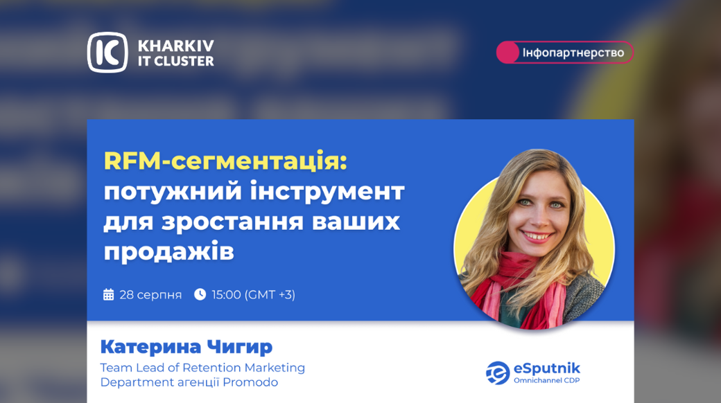 📅 28 серпня | 15:00 (GMT+3) відбудеться зустріч на тему: RFM-сегментація — потужний інструмент для зростання ваших продажів