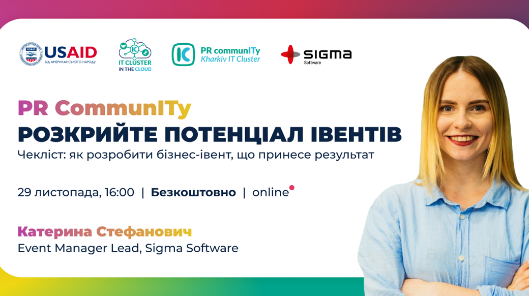 📌 Івент — стратегія: чи дійсно івенти потрібні вашому бізнесу? 📌 Івенти в партнерстві: кейси, red flags та lessons learnt 📌 Організація власних заходів: формати, чек-лист, наші спостереження 📌 Бюджету немає, але ви тримайтесь: інші формати для малого та середнього бізнесу Спікерка заходу: 🎙 Катерина Стефанович, Event Manager Lead at Sigma Software 👉 Відкрий для себе цю можливість зареєструвавшись за посиланням ℹ️ PR CommunITy реалізується за підтримки Програми USAID «Конкурентоспроможна економіка України».Івенти — ключовий інструмент для бізнесу, чи модний тренд?