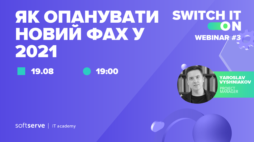 Мрієш стати частиною перспективної сфери IT, але не знаєш з чого почати? Якщо ти працюєш економістом, перекладачем, водієм, маркетологом, держслужбовцем, але відчуваєш, що світ технологій запалює тебе, приєднуйся до серії онлайн-вебінарів Switch IT On.