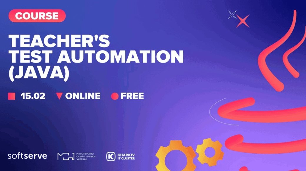 Teachers' Test Automation (Java) — це безкоштовне навчання для освітянської спільноти, розроблене глобальною ІТ компанією SoftServe, за підтримки МОН України та Харківського ІТ Кластера, без вступного іспиту. Основні вимоги – знати основи Java та бажання професійно розвиватись.