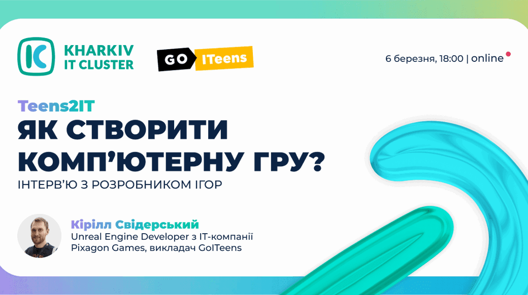 Kharkiv IT Cluster запрошує школярів і студентів коледжів долучитися до інтерв’ю з Game developer’ом у межах наступної зустрічі проєкту Teens2IT.