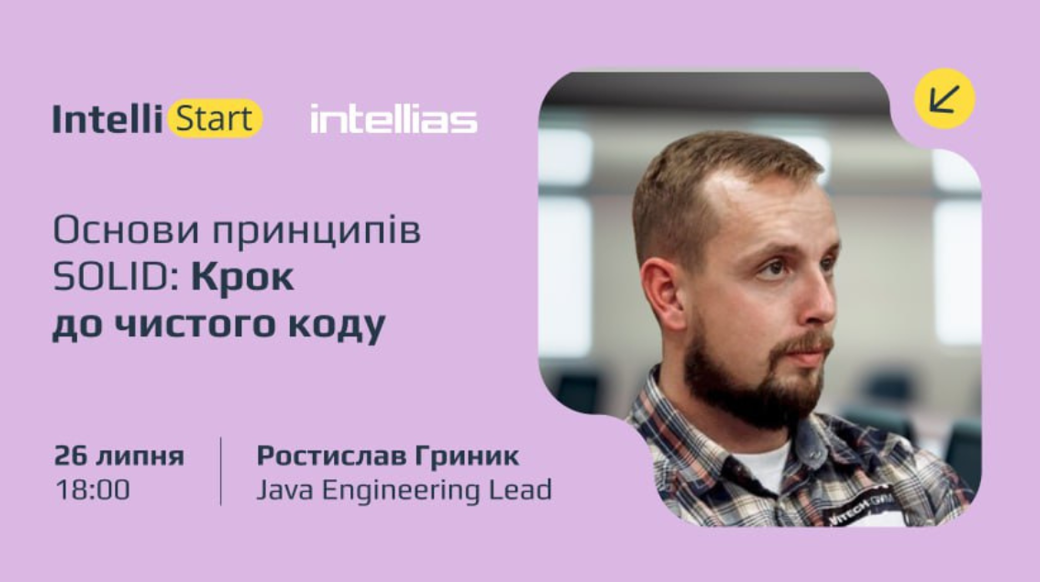 Хочеш писати код красиво? Приходь на вебінар IntelliStart. Ми розглянемо базові принципи SOLID, які допоможуть тобі створювати підтримуваний та зрозумілий код. А ще – принципи KISS (Keep It Simple, Stupid), DRY (Don't Repeat Yourself) та YAGNI (You Aren't Gonna Need It), та як завдяки їм покращити якість коду на практиці.