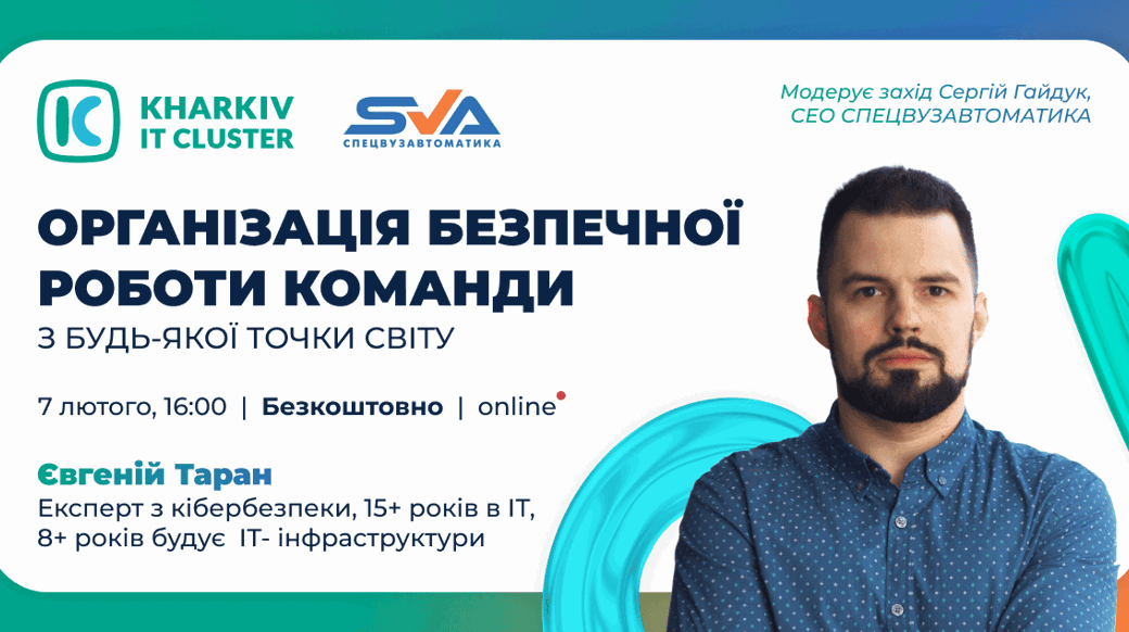 Запрошуємо 7 лютого о 16:00 на івент від компанії СПЕЦВУЗАВТОМАТИКА, присвячений темі «Організація безпечної роботи команди звідусіль».