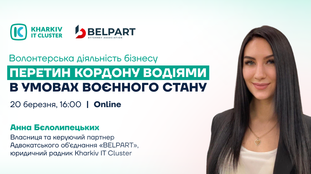 Спікер: Анна Бєлолипецьких — власниця та керуючий партнер Адвокатського об’єднання «BELPART”, юридичний радник Kharkiv IT Cluster.