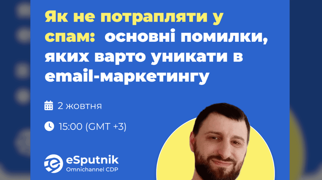 📅 2 жовтня о 15:00 на вебінарі омніканальної CDP eSputnik на тему: «Як не потрапляти у спам: основні помилки, яких варто уникати в email-маркетингу» ми розглянемо типові проблеми маркетологів із розсилками та методи їхнього вирішення.