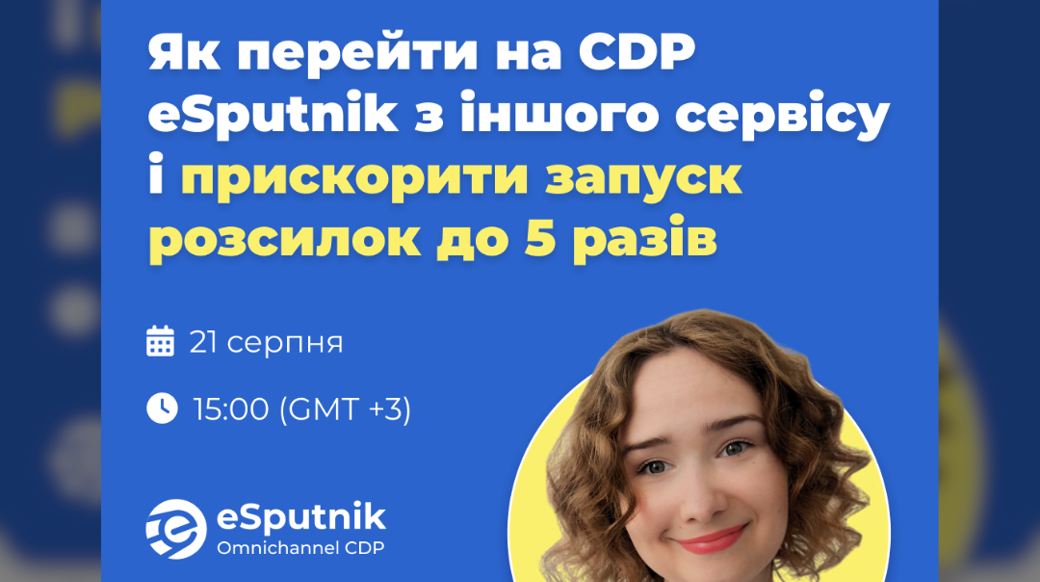 📅 21 серпня | 15:00 (GMT+3) відбудеться зустріч на тему: Як перейти на CDP eSputnik з іншого сервісу і прискорити запуск розсилок до 5 разів.