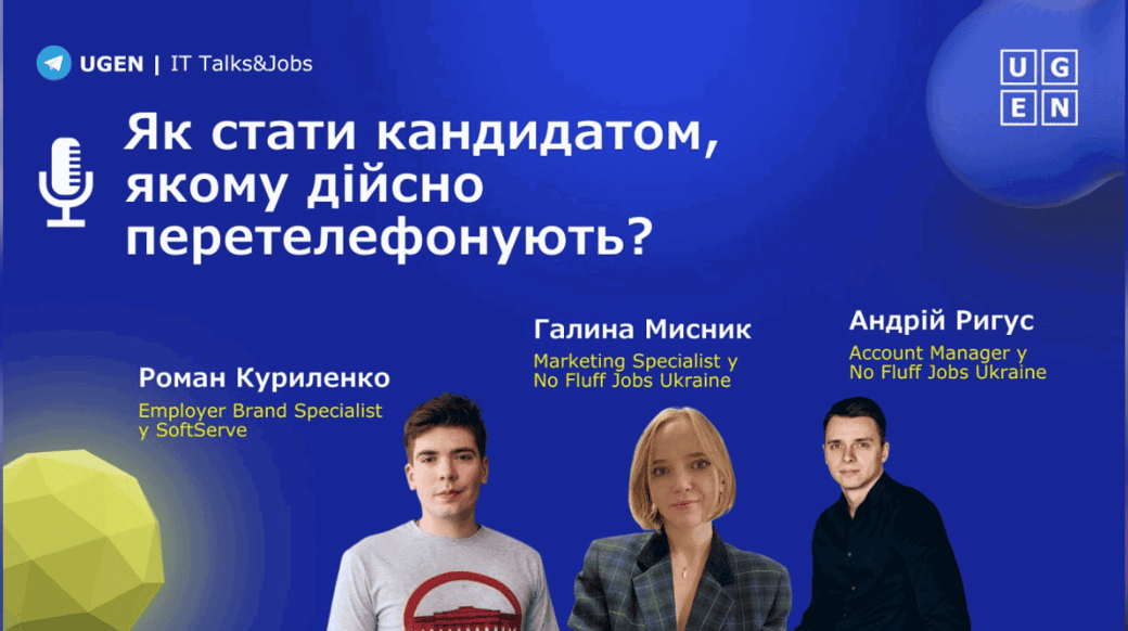 Запрошуємо відверто поговорити про це на Telegram-стрімі від UGEN IT Talks&Jobs і No Fluff Jobs Ukraine «Як стати кандидатом, якому дійсно перетелефонують?»