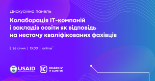 Читати повністю26 січня відбудеться подія за участі власників і керівників IT-компаній, ректорів передових закладів вищої освіти та представників USAID. У фокусі дискусії — реформи IT-освіти ...