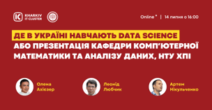 Читати повністю14 липня о 16:00 у четвер Kharkiv IT Cluster разом із НТУ «ХПІ» проведе зустріч «Поступай в ХА. Де в Україні навчають Data Science? Презентація кафедри Комп’ютерної математики ...