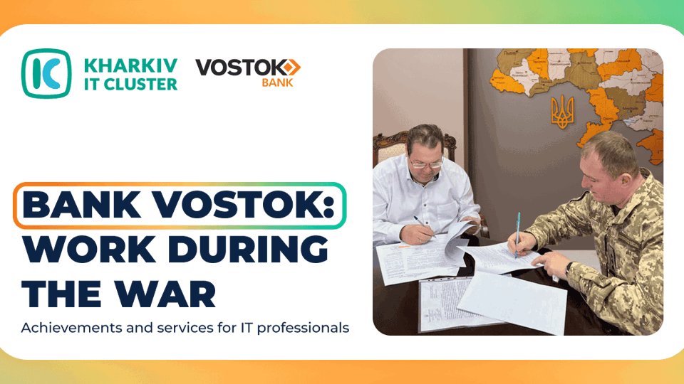 Bank Vostok does its best to provide quality services to its customers and support them at all times. The work continues and improves — we do everything for the sake of Victory! Join Kharkiv IT Cluster and become part of an unbreakable community united by common challenges and goals.Read also