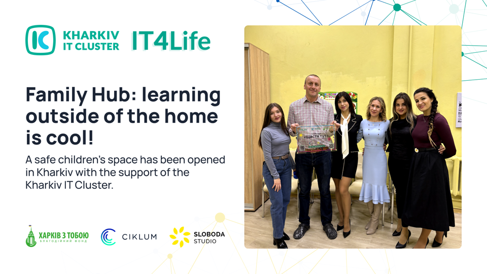 Family Hub «Happiness is Here» is a new educational center in Kharkiv where children can learn and develop in a safe environment. Through the cooperation of the IT4Life Charitable Foundation, Kharkiv IT Cluster, and the «Kharkiv with You» Charitable Foundation, a place was created that meets all the needs of children and their parents. The initiative was supported by companies like Ciklum and Sloboda Studio, which helped equip the space with everything necessary.